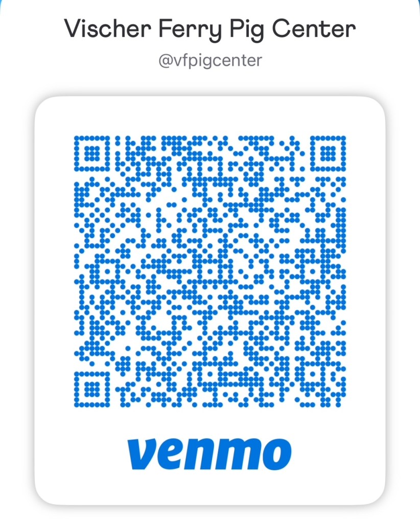If you’d like to donate towards this goal, you can click above, or use the below venmo and paypal codes. We thank you. Please consider a recurring gift on Zeffy or Patreon. This platform will allow us to understand our ongoing income and help more pigs without emergency or urgent fundraisers. Please note Zeffy includes tips by default, you can drop that to $0 by clicking “edit my tip”. Tips go to Zeffy to operate the platform for free, but they are not required.