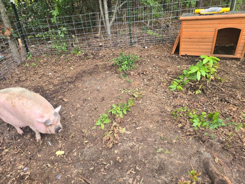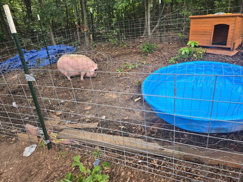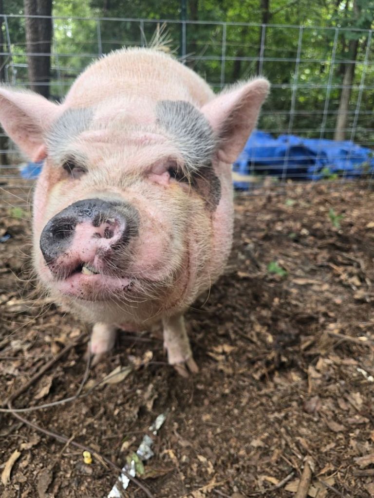 Meagan spent years traveling the country in an RV with her people (mom, dad, kids). When they settled in South Carolina she continued her adventures. Unfortunately she wasn’t a welcome guest when she went on her treks around the neighborhood. Her family was considering rehoming her for her own safety when they were referred to us! For just under $600 Meagan has a lovely pen with house and pool. This winter she’ll have straw and a place to stay warm.